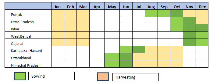 Parts of Bihar, Gujarat (Rabi), Karnataka (Rabi), Jammu and Kashmir, Maharashtra (Rabi), Punjab and Uttar Pradesh. |